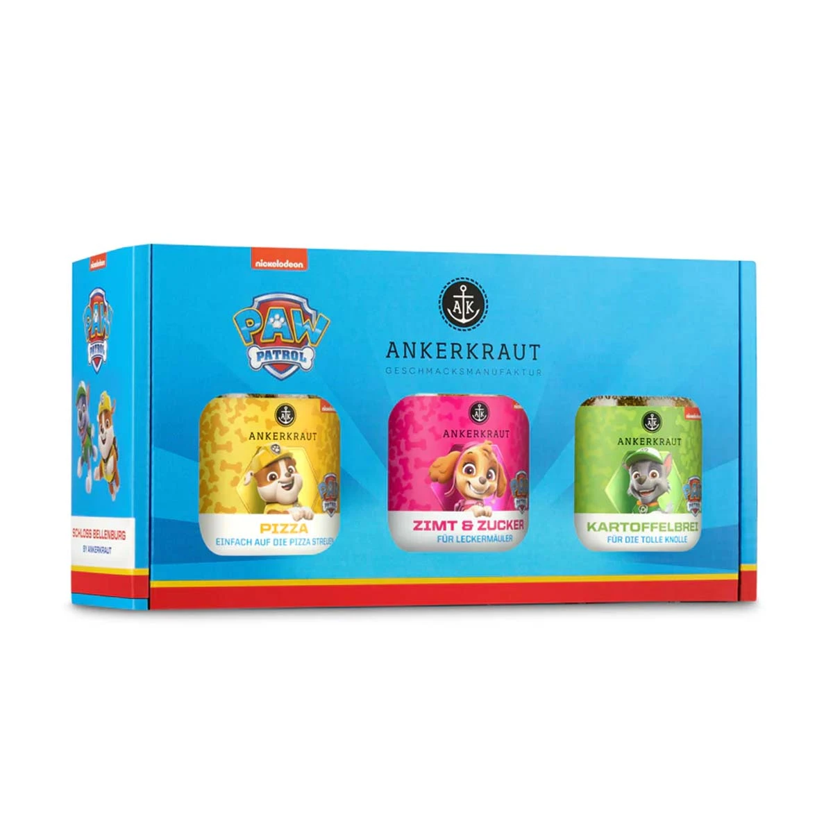 Ankerkrauts dreifach wirkende Gewürzmischung macht aus dir einen film- bzw. serienreifen Sternekoch! Skye, Rocky und Rubble von der Paw Patrol geben dir Zimt & Zucker, Kartoffelbrei sowie unser Pizza Gewürz als optimale Ausrüstung an die Hand. Die 3 Gewürzmischungen sorgen für eine gute Abwechsulng und pimpen eure Gerichte garantiert auf, sodass auch Eure kleinen Begleiter sich definitiv freuen werden.