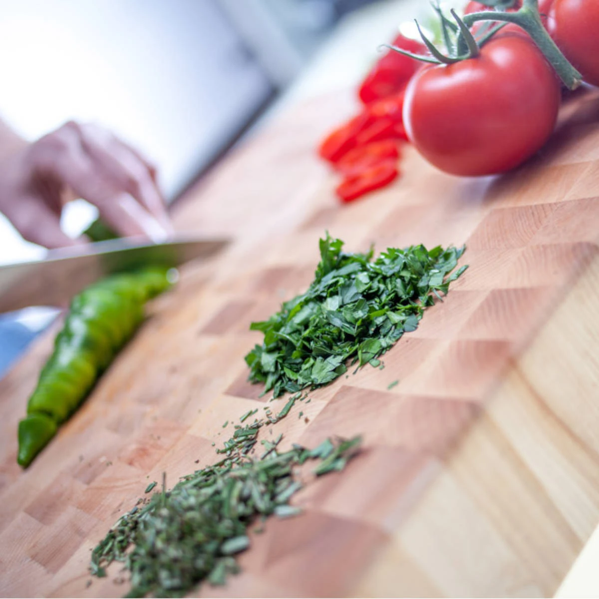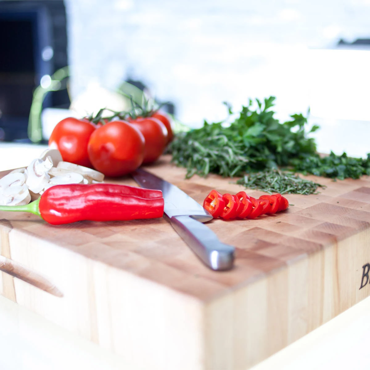 Die hochwertigen Hackblöcke der sind verwendbar, so dass auf einer Seite Fleisch, auf der anderen Obst und Gemüse zubereitet werden kann. erlauben den bequemen Transport, das Schneidebrett ist zudem leicht zu reinigen und zu pflegen. Das geschmeidige Ahornholz in Premiumqualität schont die Klingen hochwertiger Messer.