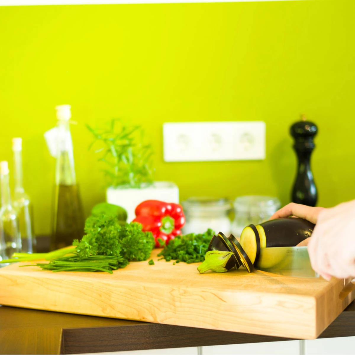 Jedes hochwertige Holzbrett ProChef ist verwendbar, so dass auf einer Seite Fleisch, auf der anderen Obst und Gemüse zubereitet werden kann. Die Schneidebretter sind zudem leicht zu reinigen und zu pflegen. erlauben den bequemen Transport, das geschmeidige Ahornholz in Premiumqualität schont die Klingen hochwertiger Messer.