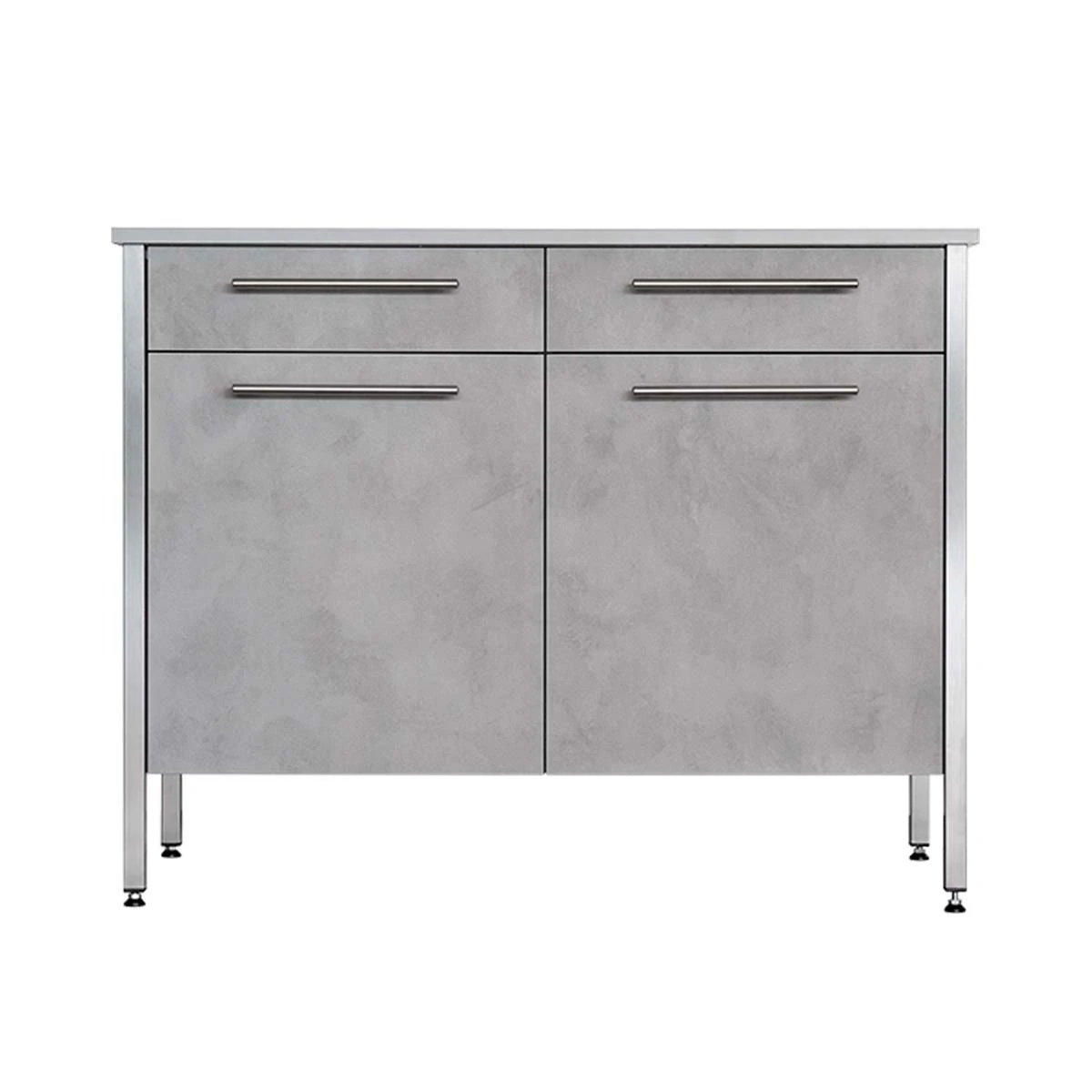 Mit zwei Schubladen und zwei großzügig angelegten Schranktüren bietet der Spezialist, bei 120 cm Breite, Platz für alle Eventualitäten. Er bietet viel Flexibilität in der Nutzung ohne Kompromisse in Sachen Optik und Qualität.