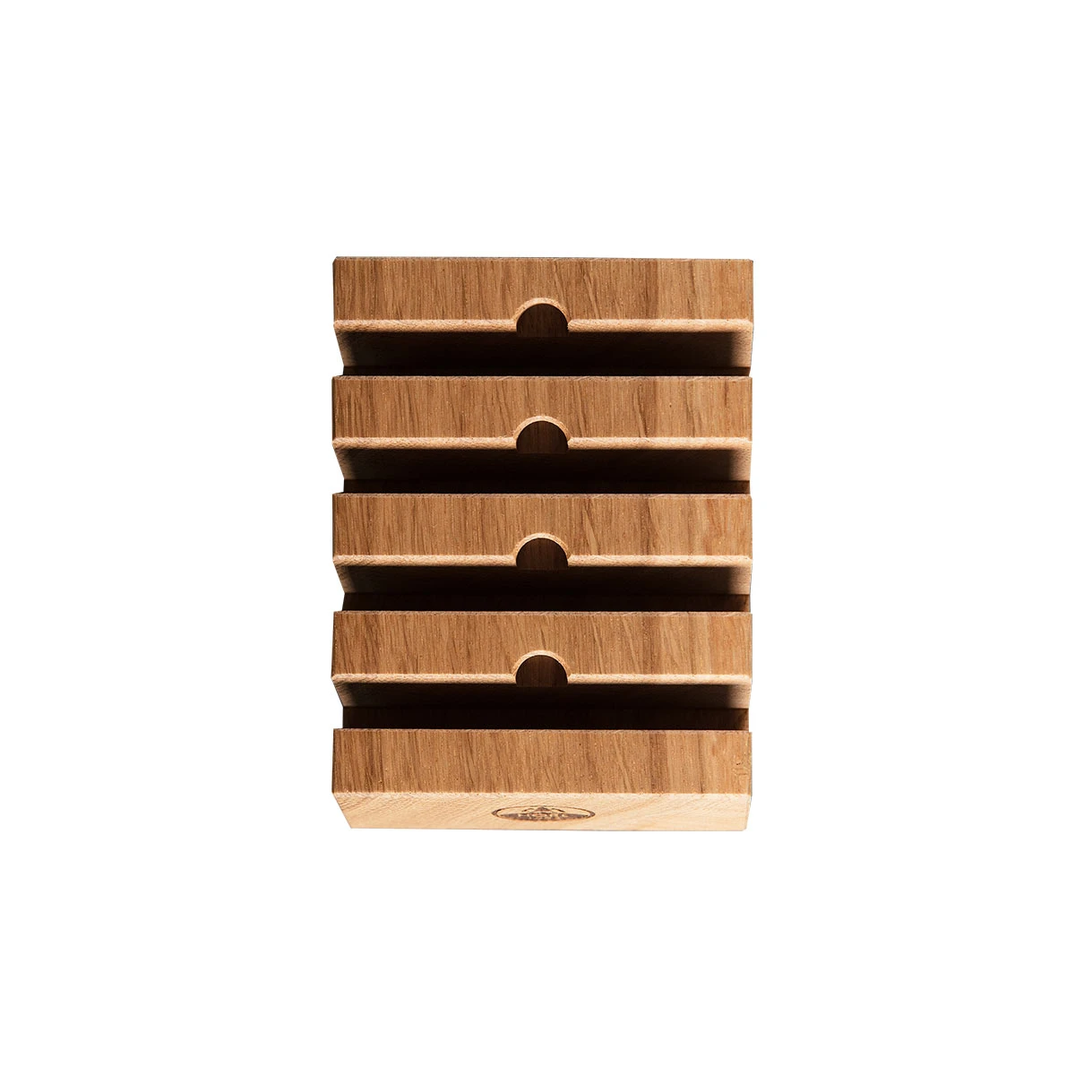 Die HORL Station für Schleifscheiben bietet Platz für insgesamt vier HORL Rollschleifer Schleifscheiben. Die Aussparung passt sowohl für die HORL Diamantschleifscheiben, sowie die HORL Edelkorundscheiben. Hergestellt im Schwarzwald aus hochwertigem Eiche-Massivholz.