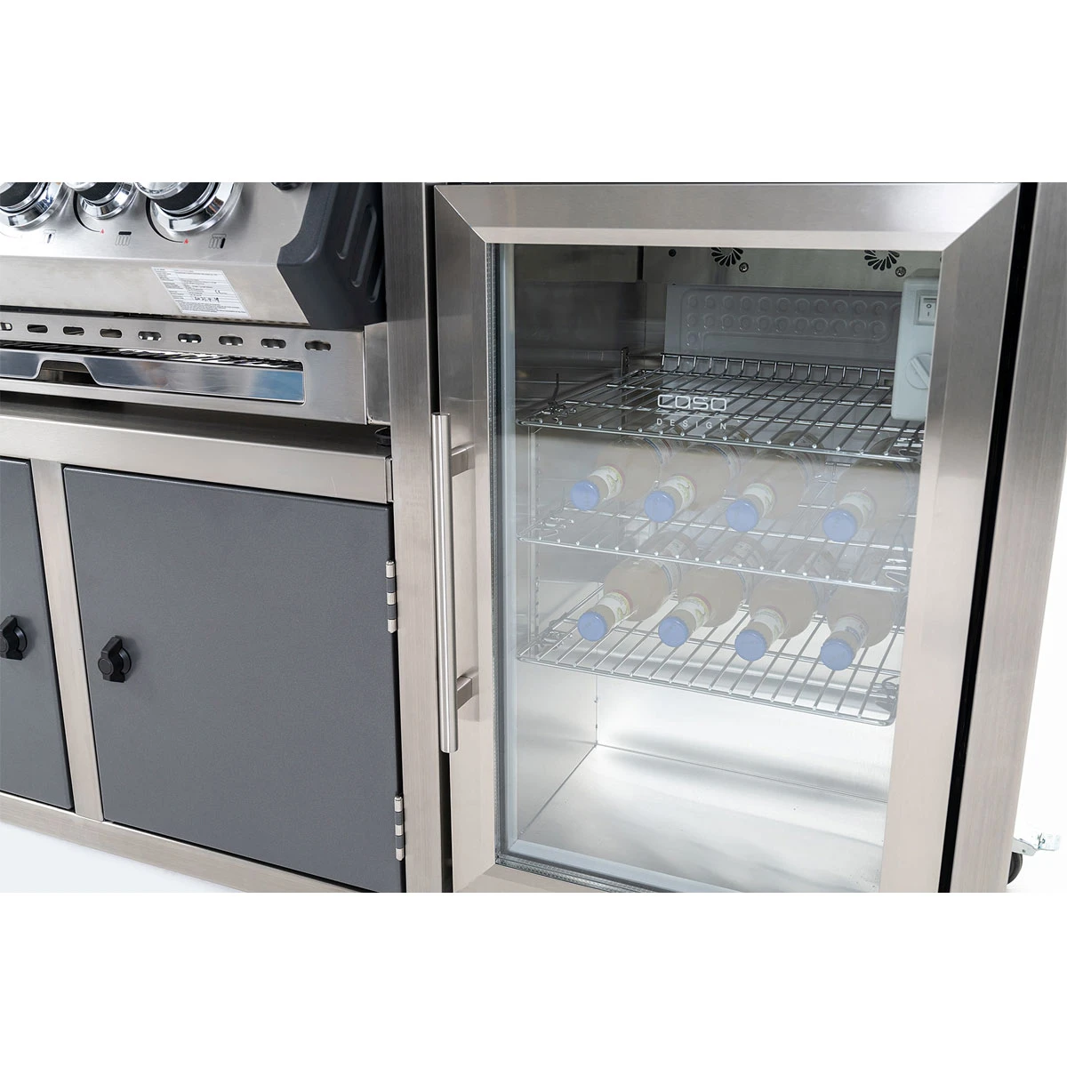 Mit dem funktionsstarken Outdoorkühlschrank wird die Blackline Gasgrillstation zum all-inclusive Wohlfühlpaket: Bleibt bequem am Grill stehen und spart Euch den müßigen Weg zum Kühlschrank Eurer Indoorküche, um Grillgut und sonstige Zutaten zu holen. Mit einem Lagervolumen von 63 Litern ist ausreichend Platz für Fleisch, Beilagen und gut gekühlte Getränke.