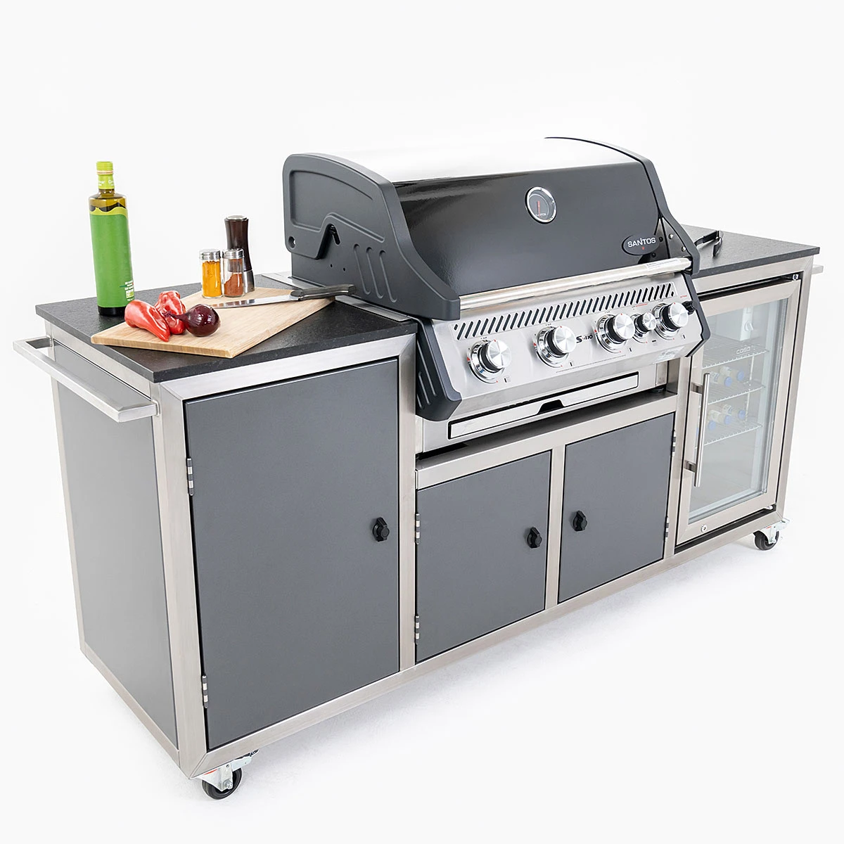 - SANTOS Gasgrill, umrahmt von einer massiven Granitarbeitsfläche, der jedes Grillerherz höher schlagen lässt.