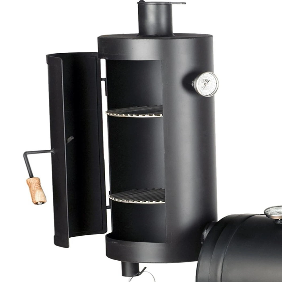 Die Smokerschmiede achtet für die Fertigung nicht nur auf ein hochwertiges Material, das in einer Wandstärke von 4 mm verarbeitet wird. Im Aufsatz steckt die ganze Joe’s Barbeque Erfahrung. Und deshalb überzeugt der Warmhalte-Aufsatz auch durch sein unkompliziertes Handling und die beiden enthaltenen Roste aus Edelstahl (Thermometer und Tropfeimer sind nicht im Lieferumfang enthalten).