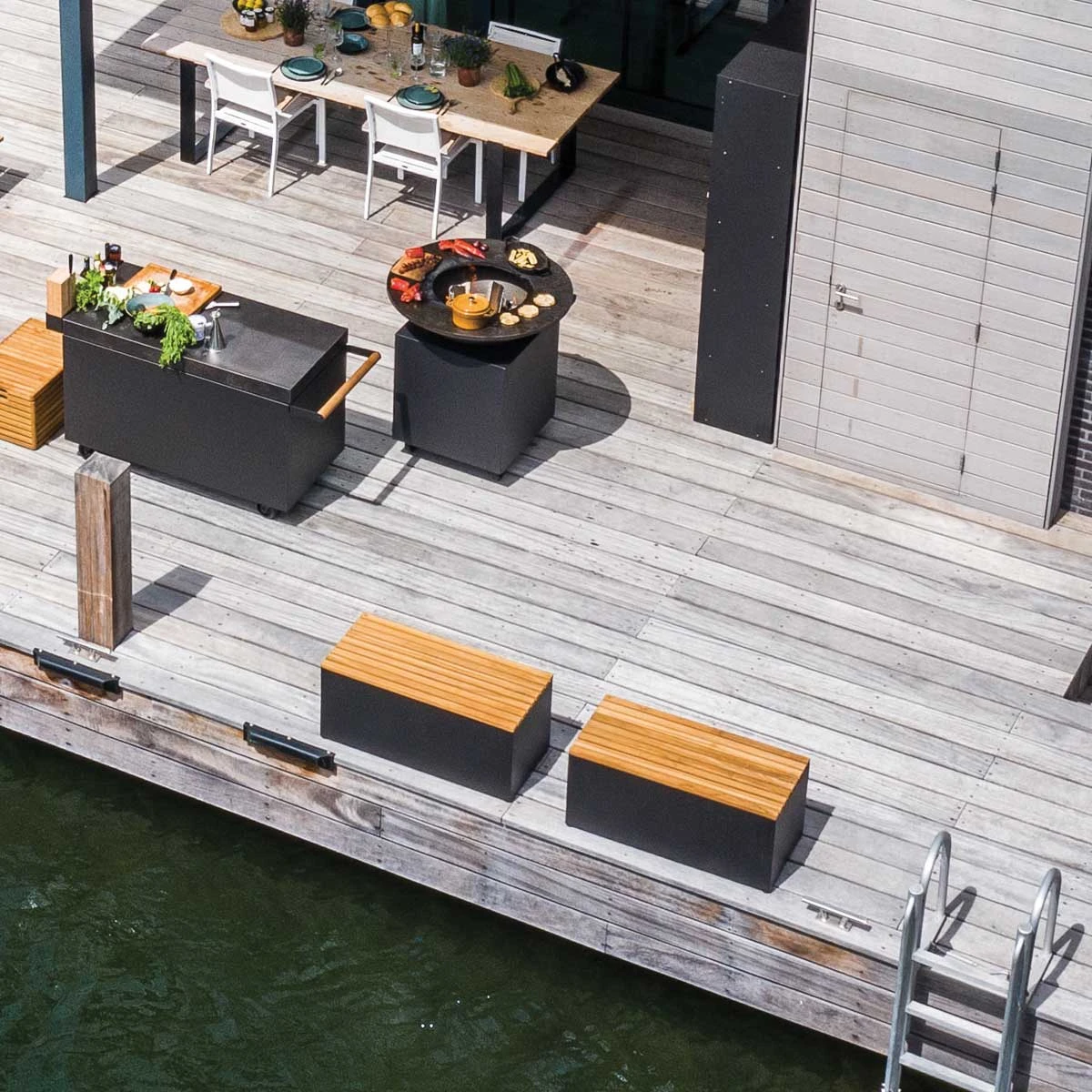 Mit OFYR Möbel-Modulen zur perfekt ausgestatteten Outdoor-Küche: Die OFYR Bench Module sind die für genussvolle Abende und nette Gespräche rund um Eure OFYR Feuerstelle. Während Ihr auf der Grillplatte herrliche Leckereien zubereitet, bietet die Euren Gästen eine bequeme Sitzfläche, die sehr stilvoll die OFYR Grillstellen und OFYR Outdoor Module ergänzt.