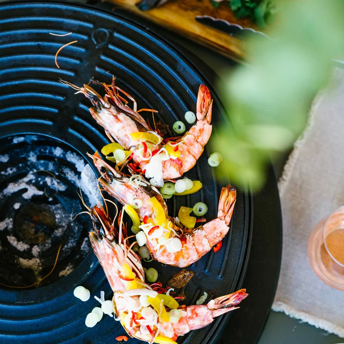 Nach dem Aufheizen und Einölen der Gussplatte könnt Ihr sofort loslegen mit der gemeinsamen Zubereitung von raffinierten Köstlichkeiten: Von Frühstück mit Ei und Bacon über Steak, Spießen und Meeresfrüchten bis Obst und Desserts sind Euren Grillkreationen keine Grenzen gesetzt.