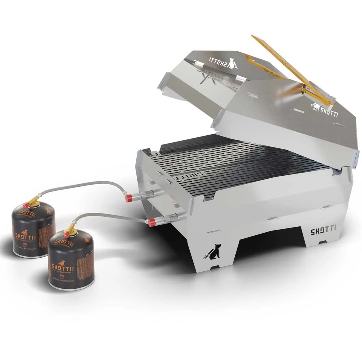 Mit dem Deckel aus Edelstahl verwandelt Ihr Euren Skotti Max Grill in einen Multifunktions-Grill. Dieses clevere Tool besteht aus sechs Teilen und kann für die verschiedensten Funktionen genutzt werden. Je nachdem, wieviele Einzelteile Ihr zusammensteckt, ergibt sich jeweils ein anderer praktischer Helfer für noch mehr Spaß mit Eurem Skotti: